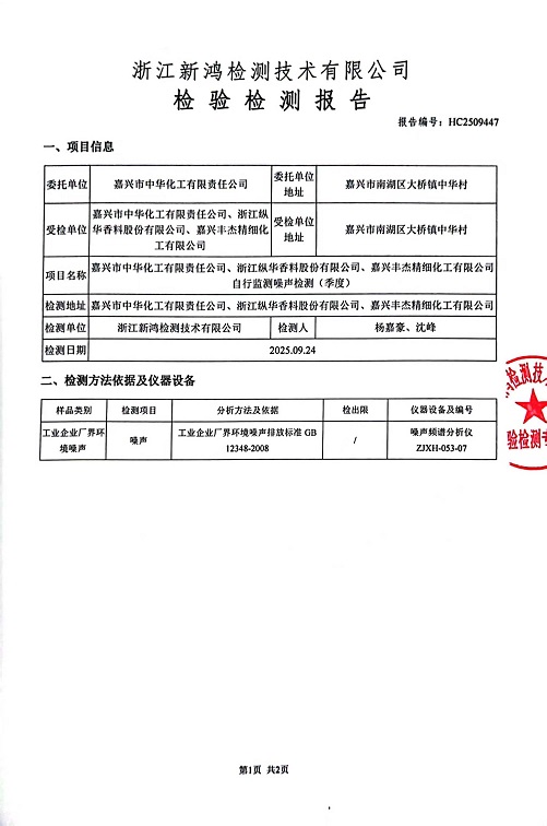- 中華化工3季度噪聲檢測報(bào)告